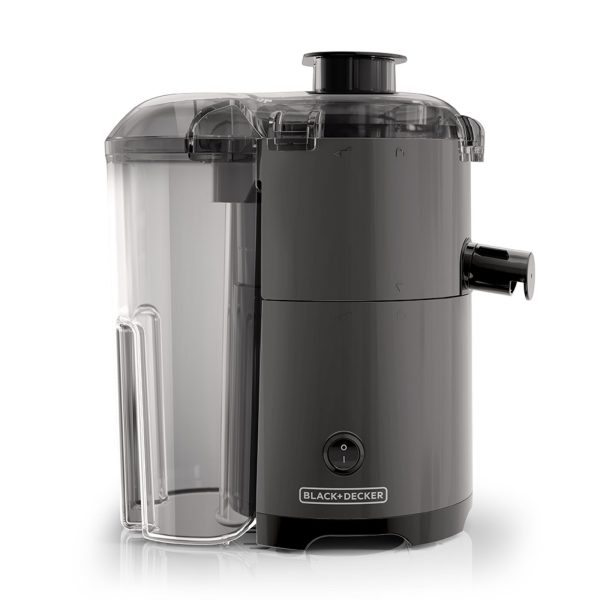 El extractor de jugo ahora se ha mejorado con la tecnología QUIET y Easy Twist Assembly! El Extractor de Jugo de 400 Watts de Black+Decker hace fácil convertir todas sus frutas y vegetales favoritos en un delicioso jugo sin pulpa. EL potente motor de 400 Watts Funcióna rápidamente a través de las verduras y frutas, separando la pulpa de frutas frescas, la cual es colectada en un recipiente separado. Con controles intuitivos y piezas aptas para lavavajillas, es la forma más rápida y fácil de disfrutar jugo._x000D_